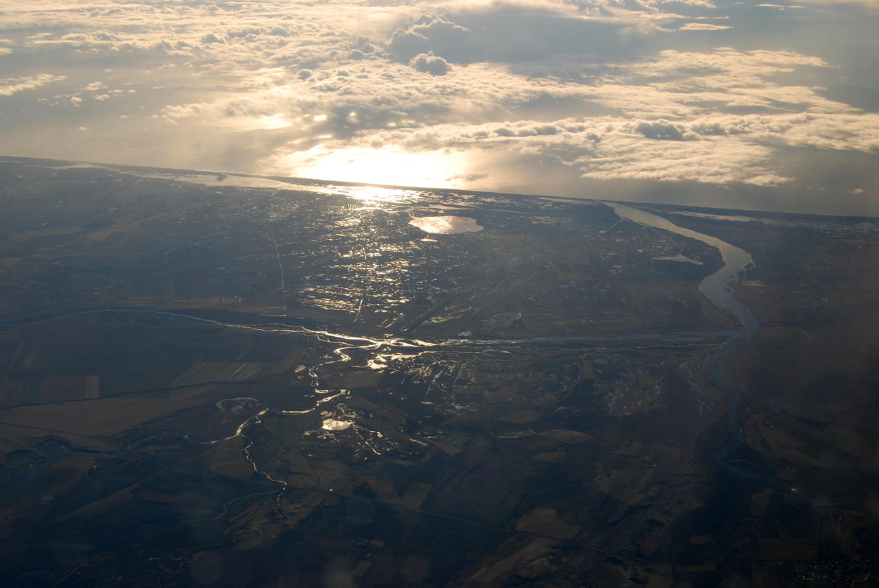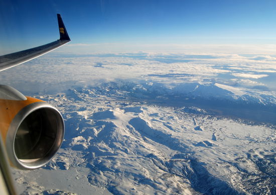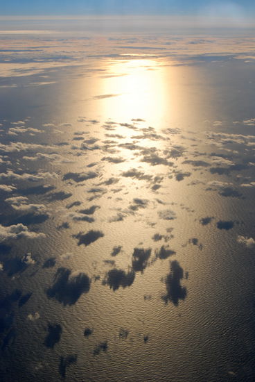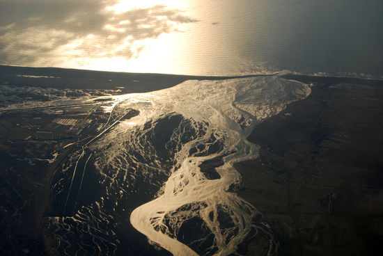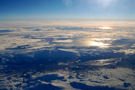 Beim Hinflug riß über Island die Wolkendecke auf. Wir konnten u.a. die Eisberglagune Jökulsárlón, den Eyjafjallajökull und mehrere Flüsse sehen, die durch die Ebene zum Meer fließen. Im Anflug auf Keflavik sahen wir noch das Geothermalgebiet Gunnuhver an der Spitze von Reykjanes und in der Ferne sogar den Snæfellsjökull.