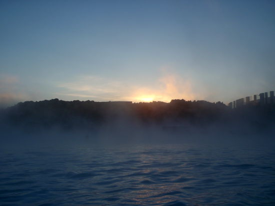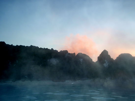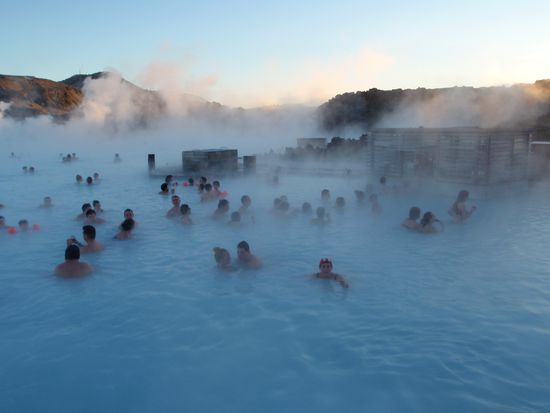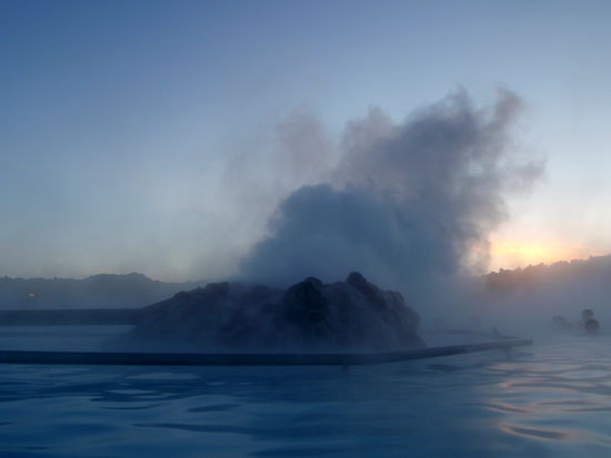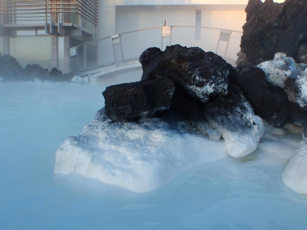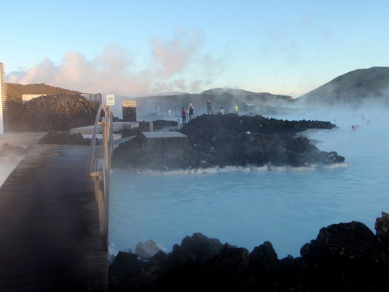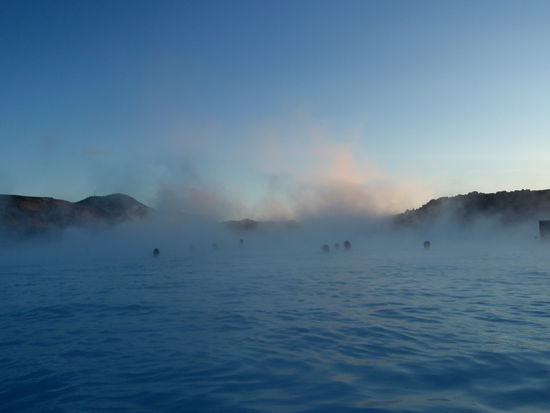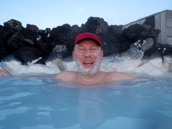 Wir haben die Reise als Paketreise gebucht, zu der mehrere Ausflüge gehörten. Gleich vom Flughafen aus ging es zur Blauen Lagune. Das ist eine Badeanlage, die aus dem "Abwasser" eines Geothermal-Kraftwerkes entstanden ist. Das Wasser ist sehr mineralhaltig, milchigtrüb und schön warm. Der Boden ist mit weißem Schlamm überzogen, der auch zur Hautbehandlung verwendet wird.
