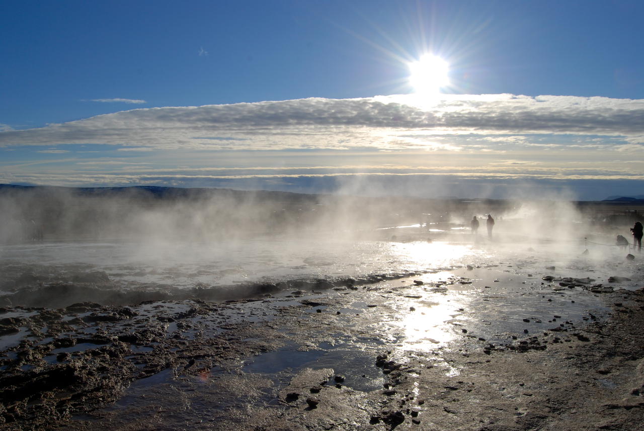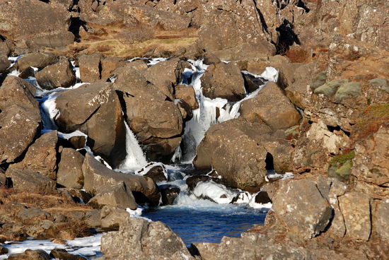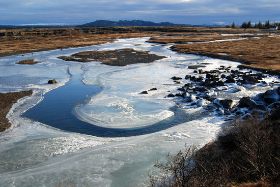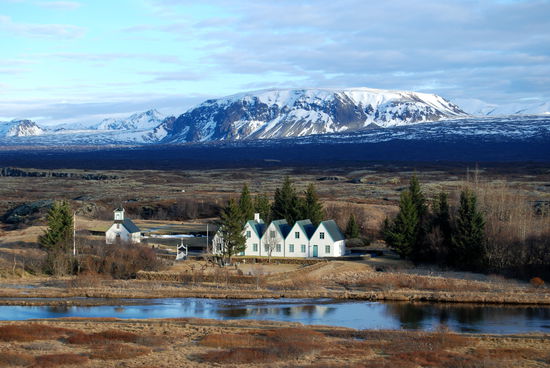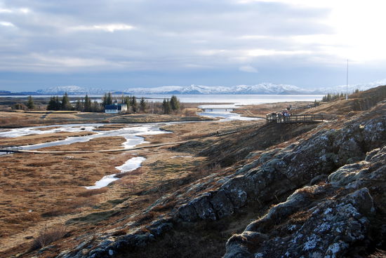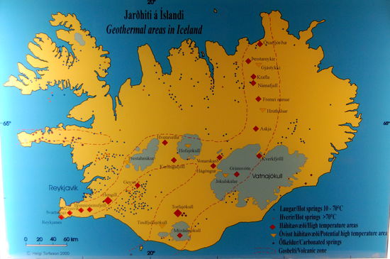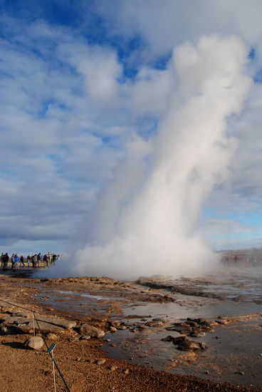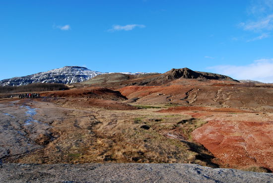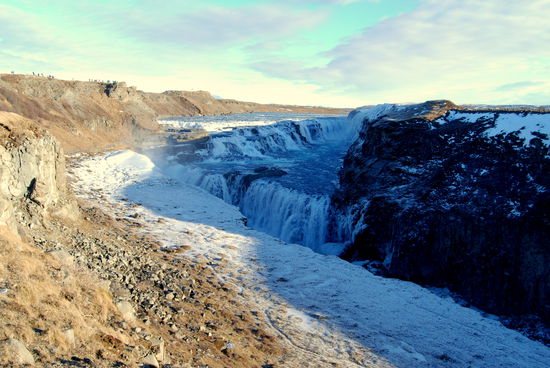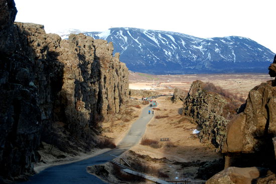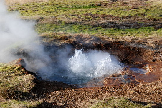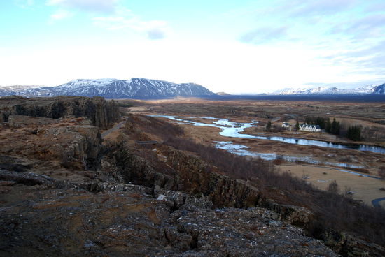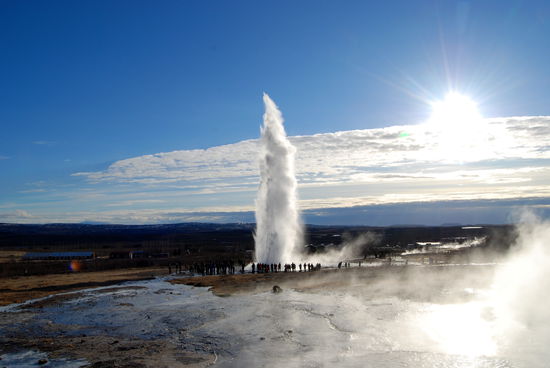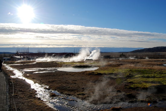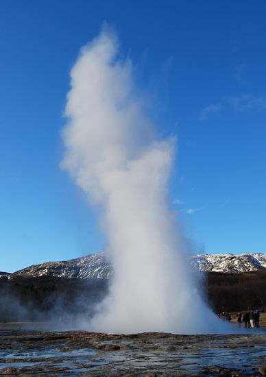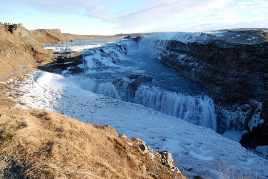 Am nächsten viel zu frühen Morgen ging es auf die große Rundfahrt "goldener Kreis" nach Geysir, zum Gullfoss und nach Thingvellir. Auf dem Weg haben wir eine Tomatenzucht besichtigt. In Island wird der größte Teil des Gemüses in Treibhäusern gezogen, die durch Erdwärme beheizt werden. Leider lag nur noch wenig Schnee, aber es war kalt und die Sonne schien. Unterwegs sahen wir immer wieder schöne typisch isländische Autos, von denen Rainer ganz begeistert war. Am Gullfoss waren die Felswände schön vereist. In Geysir, nur wenige Kilometer entfernt, ist die große Springquelle, von der alle ihren Namen haben, kaum noch aktiv. Alle 5-10 Minuten springt aber sein Nachbar Strokkur, das Butterfaß, als z.Zt. einziger aktiver Geysir. Thingvellir ist immer wieder interessant. Hier driften die eurasische und die amerikanische Kontinentalplatten auseinander. Island wächst jedes Jahr um 2 cm. Seit der Vikingerzeit traf sich hier jedes Jahr im Juni das isländische Parlament - Althing um Gesetze zu beraten und zu verkünden. Am 17 Juni 1944 wurde hier auch die Unabhängigkeit von Dänemark erklärt. Das Althing geht bis ins Jahr 930 zurück und ist damit das älteste bestehende Parlament der Welt.