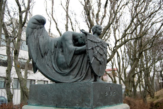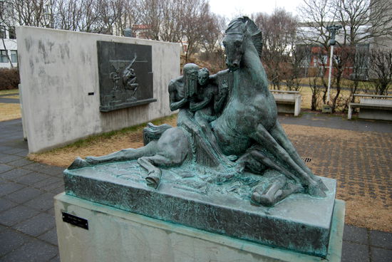 Wir gingen vom Hotel in Richtung Hallgrimskirkja, die die Silhouette Reykjaviks beherrscht. Auf dem Weg dorthin kamen wir an der deutschen Botschaft vorbei, gegenüber steht der Berliner Bär. Neben der Hallgrimskirkja liegt ein kleiner Skulpturenpark mit dem Einar Jónsson Museum. Im Kirchturm kann man mit dem Fahrstuhl zur Aussichtsplattform fahren. Von dort hat man eine tolle Rundumsicht auf die ganze Stadt. Anschließend spazierten wir durch die Straßen zum Kulturhaus. Hier gibt es u.a. einen historischen Bibliotheksraum und eine Kunstausstellung. Das besondere war aber die Ausstellung der Originalhandschriften der alten Sagas.