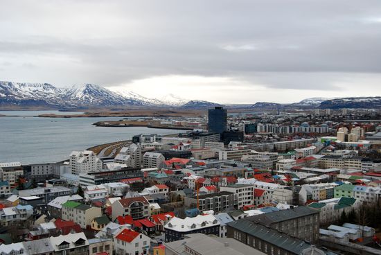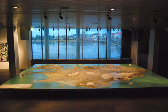 Auf dem Weg zum Hotel gingen wir am Rathaus vorbei, in dem man ein großes Relief von Island bewundern kann. Der Raum liegt auf Höhe des Wasserspiegels des Tjörnin, dem See mitten in der Stadt, an dem das Rathaus liegt. Auf der freien Wasserfläche sammeln sich viele Enten und Singschwäne, die uns auf unserem weiteren Heimweg ein Ständchen brachten.