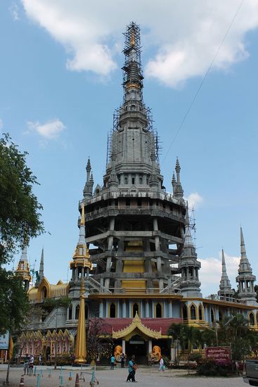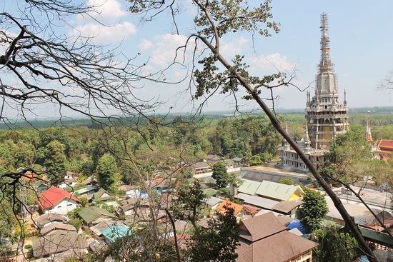 Die Anlagen rund um den Wat Tham Sua ähneln ein bisschen einem Freizeitpark. Zuvorderst kommen wir an dem Rohbau eines mächtigen Stupa vorbei. "Helfer" fordern uns auf, das Bauwerk von innen zu betrachten - für die Kleinigkeit von 199 Baht / 5,- €, damit soll der Weiterbau finanziert werden, in etwa wie bei der Sagrada Família - wir lehnen dankend ab.