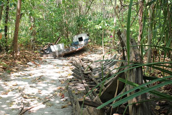 Wer sich auf Hong Island abseits der Strände ins Unterholz pirscht, kann Reliquien des Tsunamis von 2004 entdecken - haben wir gemacht, bitte schön.
