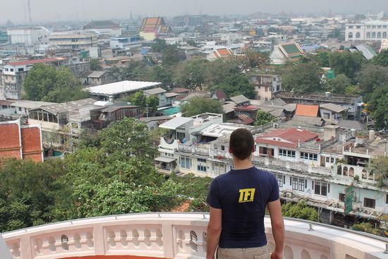 Vom Golden Mount aus kann man normalerweise einen herrlichen Rundumblick über ganz Bangkok erhaschen - heute jedoch nicht, denn eine massive Smogglocke hängt über der Stadt.