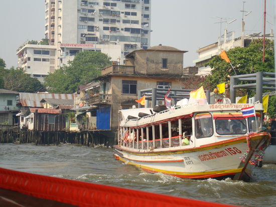 Später machen wir uns auf den Weg zum Chao Phraya, der Hauptschlagader der Stadt. Wer in Bangkok "schnell" und günstig von