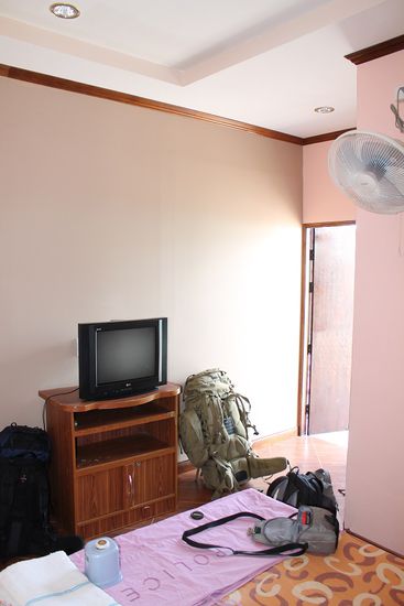 Für 500 Baht / 13 Euro gibt es hier ein sauberes Zimmer mit Fernseher, der sogar die deutsche Welle empfängt.