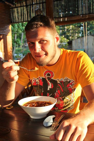 Wir testen uns gleich mal quer durchs Sortiment, mein Makkassan-Curry sprengt dabei die Scoville-Skala.