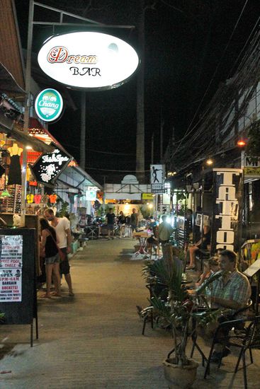 Die Bars reihen sich hier dicht an dicht und Händler bieten allerlei Ramschware zum Kauf.