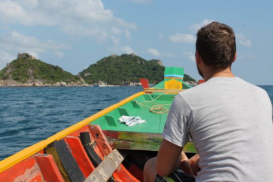 Heute wollen wir einen Ausflug auf die benachbarte Insel Nang Yuan machen. Vom Taxi-Boot-Stand am Sairee-Beach aus, kann man sich für die festgelegte Summe von 100 Baht / 2,50 € auf das nahe gelegene Eiland fahren lassen.