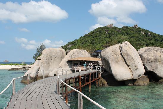 Die schiere Menge an Sonnenschirmen lässt es jedoch erahnen, Nang Yuan Island ist keinesfalls ein Geheimtipp, die Insel ist in nahezu jedem Programm örtlicher Schnorchel- und Tauchtouren vertreten, zudem schaufeln Speedboote Massen an Tagestouristen von den nahen Inseln Pha-Ngan und Samui heran.