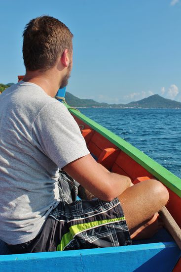 Die Überfahrt mit dem Longtailboot dauert circa 15 Minuten.