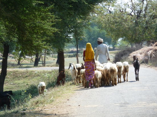 Die Straße raus führt uns wieder über die Serpentinen, die sich den Berg rauf und wieder runter winden und ständig sieht man Affen auf Häusern und Mauern herumturnen. Kurz vor Ajmer haben wir einen herrlichen Blick in das Tal auf die Stadt und den dazu gehörigen großen See. Am Ufer angelangt sieht man viele Menschen, die sich selbst und ihre Wäsche im Wasser waschen und die Kleider auf den Metallzäunen zum trocknen aufhängen. Die Fahrt durch Ajmer ist eine hochkonzentrierte Schinderei. An einer Stelle quetscht sich ein Mann mit seinen sechs Eseln auf der Hauptverkehrsstraße mitten zwischen die Autos und es wird wie gewohnt gehupt, ob notwendig oder nicht, ganz egal und gedrängelt und gequetscht. Selbstverständlich sind in allen Ortschaften immer auch Kühe mitten auf der Fahrbahn unterwegs und auf dem Highway liegen sie auf dem Mittelstreifen oder überqueren ihn gemächlich. Ansonsten kommen wir aber gut durch bis Jaipur. Das glaubt man nicht, daß ausgerechnet in Nordindien die Autobahnen von allen Asiatischen Ländern, in denen wir bisher waren, am wenigsten befahren sind. Auch den Großraum von Jaipur bringen wir relativ flott hinter uns. Da wir nicht die ganze Strecke bis Bharatpur, unsere nächste Station in der Nähe von Agra, durchfahren wollen, habe ich uns bei Dausa ein Hotel gesucht.