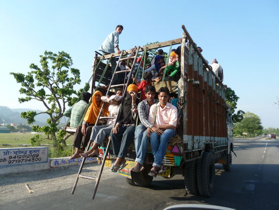 Als wir Delhi nach nur drei Stunden erreichen, hat der Spaß allerdings ein Ende. Gewohnt langsam quälen wir uns durch die Außenbezirke. Hier sind viele Trabantenstädte, die sich selbst Townships nennen, in der Entstehung und es sieht aus wie in Gropiusstadt in Berlin. Nachdem wir Delhi verlassen haben, kommen wir wieder ganz gut voran, bis ab Muzzafangar der blanke Horror beginnt. Obwohl es sich hier immer noch um den National Highway handelt, ist die Straße übersät mit den schlimmsten Schlaglöchern ganz Nordindiens und die Leute fahren wie die Henker. Oft quetschen sich PKWs gerade noch so durch einen minimalen Zwischenraum zwischen zwei LKWs und oftmals kommt es fast zum Frontalzusammenstoß. Dem Ambulanzwagen mit Blaulicht wird ums Verrecken nicht Platz gemacht. Jeder versucht durch seinen halsbrecherischen Fahrstil ein paar Meter gut zu machen. An manchen Stellen müssen wir von der befestigten Straße abweichen, um uns auf unserer Fahrspur entgegen kommenden Bussen oder LKW Platz zu machen, die ansonsten mit uns kollidieren würden. Nur gut, dass Thomas mit solchen Verhältnissen bereits aus Sri Lanka und Südindien vertraut ist, so dass er uns - mal wieder - sicher ans Ziel bringt.
