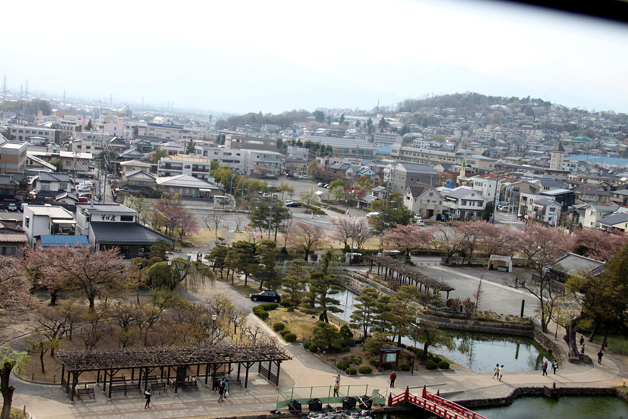 Die Krähenburg in Matsumoto stammt aus dem Jahr 1504 und ist überwiegend in schwarz gehalten. Dadurch wirkt sie recht bedrohlich. Wie in Himeji muss man die Schuhe in einem dünnen Plastikbeutel mitnehmen, weil man an einer anderen Stelle die Burg verlässt. Es sind zwar nur ein paar Meter, aber es ist eben so vorgesehen. Drinnen geht es steile Holzstiegen rauf und runter. Oben hat man einen schönen Blick über Matsumoto und die japanischen Berglandschaft.
