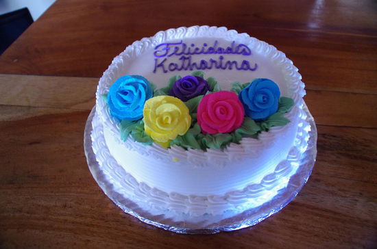 Belen, unsere Spanischlehrerin hat eine Torte, Luftballons und eine Pinata (³Figur gefüllt mit Süssigkeiten) für unser Geburtstagskind besorgt.