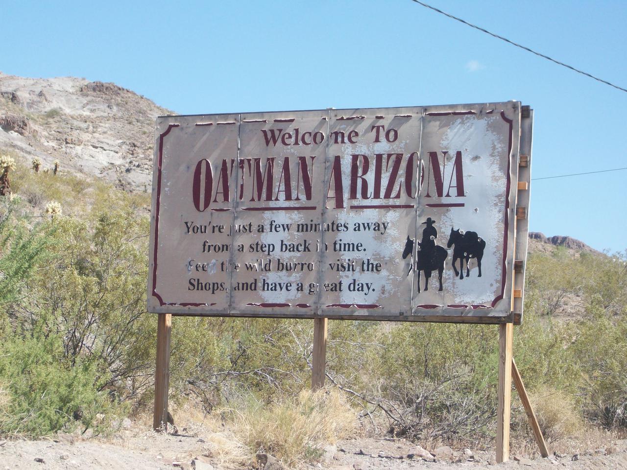 In Oatman eingetroffen, machten wir einen kurzen Fotostopp. Die Stadt wurde in ihrer urigen Art erhalten und dient als Anziehungspunkt für Touristen. Bei der Stadtausfahrt erwartete uns dann ein Kehrwagen, der 5 Kilometer nur die doppelte Sperrline reinigte.