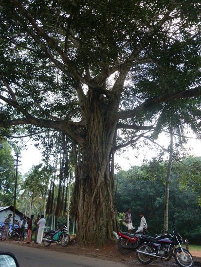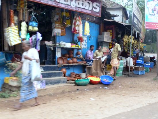 In Pothencode entdecken wir ein Fast Food Restaurant, das mit Thali Meals wirbt. Gibt es leider nicht (wie ich später erfahre, handelt es sich dabei um ein traditionelles Mittagessen), deshalb entscheiden wir uns für halbe Hähnchen, die außerordentlich gut gewürzt sind. Dazu wird eine tolle Knoblauchsauce und ein Zwiebelsalat! gereicht, der ganz köstlich ist, obwohl er fast nur aus Zwiebeln besteht. Der Ghee-Reis ist mit Nelken und anderen Gewürzen gekocht und es wird Naan Roti dazu gereicht.