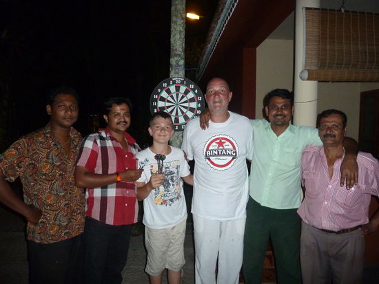 Gleich am ersten Abend hängen wir unsere Dartscheibe an der Palme vor unserem Cottage auf und es dauert nicht lang, da kommen die neugierigen Angestellten und beobachten, was wir so treiben. Kurzerhand bekommen sie die Pfeile in die Hand gedrückt und dann geht es los. Ab da haben wir jeden Abend Stimmung vor unserer Tür. Die Jungs vom Hotel finden sich bei uns ein und es werden heisse Partien gespielt und dabei ist es immer sehr lustig und alle haben einen Riesenspaß. Dabei entwickelte sich eine Freundschaft, die bis heute anhält. Wir schreiben uns regelmäßig und halten uns auf dem Laufenden. Hier kommen wir bestimmt nochmal her.
