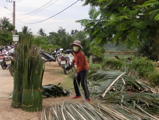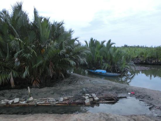 Am zweiten Tag radeln wir die 4km zum Strand, auf dem Rückweg machen wir noch einen Abstecher auf eine Halbinsel in der Flussmündung, wo es u.a. einen Mega-Friedhof, eine Wasser-Kokosnuss-Plantage, Jugendliche beim Fussballtraining und viele viele Eindrücke, wie die Einheimischen hier leben, zu Entdecken gibt. Anja ist von dieser abendlichen Rundreise sehr begeistert, da es uns Land und Leute wieder etwas näher bringt. Es ist schon dunkel, als mein integriertes Navi uns zurück nach Hoi An bringt, ein etwas hilfloses US-Ukrainisches Radel-Pärchen nehmen wir ins Schlepptau und helfen Ihnen somit aus der Orientierungslosigkeit des Abends...