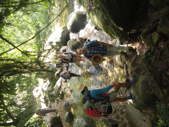 Einer der vielen wackeligen Flussübergänge, an denen wir teils auch mal zur Abkühlung ins frische Wasser springen konnten.