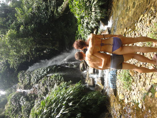 Immer mal wieder eine Abkühlung im frischen klaren Wasser nehmen...hier mit hunderten neugierigen Fischen, die an einem rumknabbern.