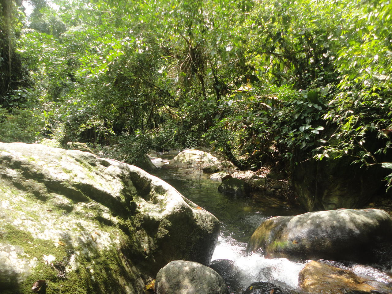 Die Natur war unfassbar schön und abwechslungsreich. Teils fühlte man sich wie mitten in einer kolumbianischer Kaffeewerbung. Wir badeten, wateten durch Flüsse, setzten uns von der Gruppe ab und genossen so die Einsamkeit und das Naturfeeling. Wir marschierten an Kogi-Dörfern vorbei (von den Tairona abstammend), der nun hier in dieser Region ansässige Indianerstamm und erhielten ein paar Infos über deren Philosophie und Lebensweise. Die Kogis gehen sehr behutsam mit Informationen um und wählen ihre Wörter, welche sie preisgeben, sehr sorgfältig. Der Kogi, der mit unserer Gruppe ein paar Wörter austauschte, sagte Kokablätter kauend, dass die Kogis sehr alt werden, um die 200 Jahre.