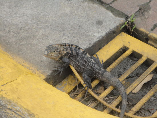 Wir gehen einen schönen Weg hinauf auf einen Aussichtspunkt, von dem aus man einen beeindruckenden Ausblick auf den Tropenwald und Strand von Manuel Antonio hat. Uns laufen eine ganze Reihe an Reptilien über den Weg, welche sich interessante und heftige Kämpfe liefern.