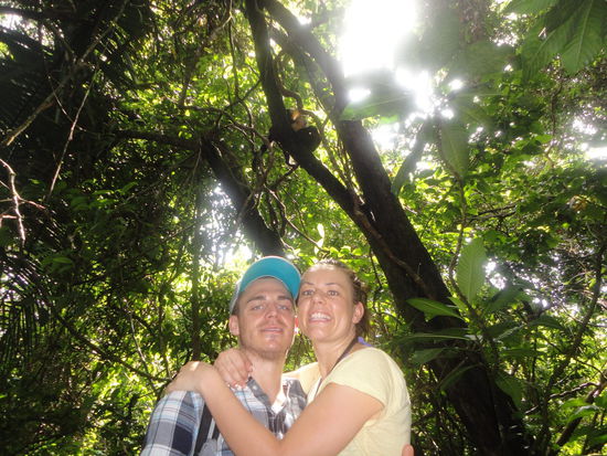 Echt komisch diese Affen (Weißschulterkapuziner), sie tauchen immer in größeren Gruppen auf und fühlen sich schnell eingeengt und werden aggressiv...wir haben gelesen, dass sie auch im Notfall mit Ästen werfen.