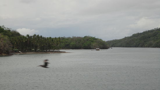 Wir entscheiden uns diesmal, eine komfortablere Transportmöglichkeit zu nutzen als die öffentlichen Busse und buchen über das Unternehmen "Interbus" die Direktfahrt nach Montezuma. Interbus ist im ganzen Land verbreitet und transportiert Touristen für ca. 50 - 80 USD von A nach B. Wir fahren mit einem kleinen gut ausgestatteten Bus/Van mit Platz für maximal zehn Personen zunächst zurück zum Hafen von Puntarenas. Dort erhalten wir unsere Tickets für die Fähre, die uns über den Golf von Nicoya (Pazifik) nach Paguera in ca. 70 Minuten bringt. Also Koffer aus dem Bus und auf die große Fähre die Treppen hochschleppen. Ein weiterer Moment, in dem ich unser Gepäck hasse. Die Fahrt ist sehr schön, das Wetter ist klar, die Temperaturen angenehm. Wir passieren einige kleine Inseln des Golfes und genießen einfach den Ausblick. Eine gute Abwechslung nach der etwa 3-stündigen Busfahrt. In Paguera angekommen, wartet auch schon unser Anschlussbus nach Montezuma, der nochmal eine gute Stunde benötigt.
