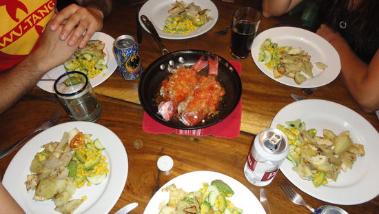 Am Abend wollen wir uns eine gute Pizza im Dorf gönnen und den letzten Abend mit Allen schön ausklingen lassen. Da Mittelamerika nicht berühmt für sein Brot ist, hoffen wir einfach, dass wir für unser Geld eine gute Pizza bekommen. Pizza bzw. europäische Gerichte sind hier absolut überteuert. Für eine normale Pizza Hawaii zahlt man locker 10 bis 15 Dollar. Der Teig ist leider wie fast überall nicht gesalzen, die Pizza ist aber insgesamt nicht schlecht.