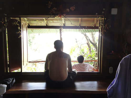 Nach einer eher unruhigen Nacht, wahrscheinlich wegen des hohen Alkoholpegels oder Ähnlichem, bereiten wir erstmal ein reichhaltiges Frühstück zu. Rührei, Toast, Käse, Nutella, Orangensaft und Kaffee geben uns alles, was wir nach dieser Nacht brauchen, um wieder fit zu werden. Danach wollen wir zu dem ca. 30 Minuten entfernten Strand namens "Long Beach" bzw. "Playa grande", den man wohl nur zu Fuß erreichen kann. Die Wanderung stellt sich leider als eine ziemliche Herausforderung dar. Aufgrund der "High Tide" bzw. Flut gibt es fast kein Durchkommen. Baumstämme werden vom gewaltigen Druck des Wassers an Land gespült und hauen uns im wahrsten Sinne des Wortes die Beine weg. Einen alternativen Weg durch den dichten Tropenwald gibt es nicht und weiterhin über schwimmende Baumstämme balancieren wollen wir auch nicht. Wir entscheiden uns nach ca. 30 Minuten aus Sicherheitsgründen wieder umzukehren. Kim und Andy leihen sich spontan an ihrem letzten Tag noch ein Quad aus. Wir gehen wieder zurück in unser aus 100%-igem Tropenholz erbautem Haus und hängen einfach ein bisschen auf dem Balkon ab und essen ein paar Instant Nudeln mit reichlich Glutamat.
