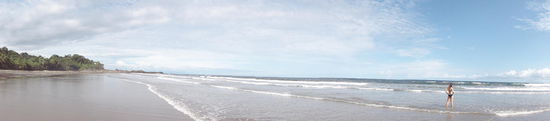 Am letzten Tag unternehmen wir einen neuen Versuch zu dem besagten Long Beach zu gelangen. Diesmal haben wir uns genau erkundigt und starten unseren kleinen Ausflug pünktlich zur "Low-Tide". Auf dem Weg dorthin macht sich schon nach ein paar Minuten eine gewaltige Weitläufigkeit bemerkbar.  Einsam und allein wandern wir Strand für Strand ab, mal führt ein kleiner Weg wieder in den Wald hinein, dann wieder hinaus und plötzlich nach einem kleinen letzten Waldstück erreichen wir einen Bilderbuchstrand! Das Wasser hat sich stark zurückgezogen, sodass sich der Playa Grande in seiner vollen Schönheit präsentieren kann. Jetzt wissen wir, warum er zu den Top-Stränden der Welt gezählt wird. Sagenhaft! Keiner von uns sagt etwas, wir genießen einfach nur und schlendern ein paar Kilometer entlang dieser prachtvollen Küste, bevor wir uns einen Schattenplatz unter den Palmen suchen.
