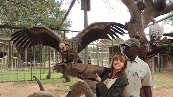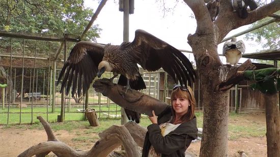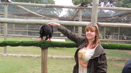 Danach ging es weiter in die Geiervoliere, das sind leider nicht so hübsche Tiere. Auch einen Geier durften wir auf unseren Arm halten, der war ganz schön schwer.