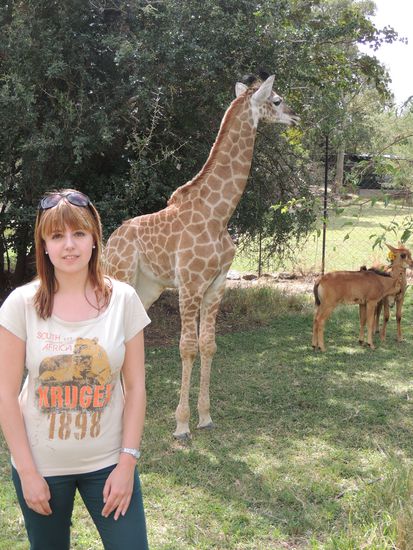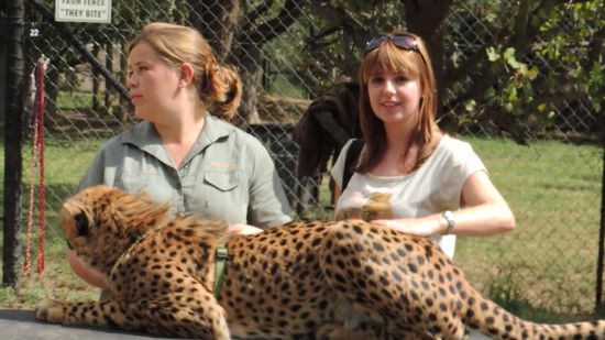 Auf dem gelände läuft eine Baby-Giraffe längs, die jetzt schon größer ist als ich . Die durften wir aber nicht streicheln, da sie ziemlich scheu ist. Wir gingen weiter zum Geparden- Gehege und hier konnten wir sogar einen Geparden streicheln.