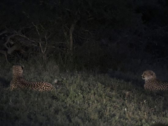 Auf dem Rückweg sahen wir 2 Geparde auf einer Wiese. Es war leider schon fast dunkel, aber trotzdem ein netter Bonus