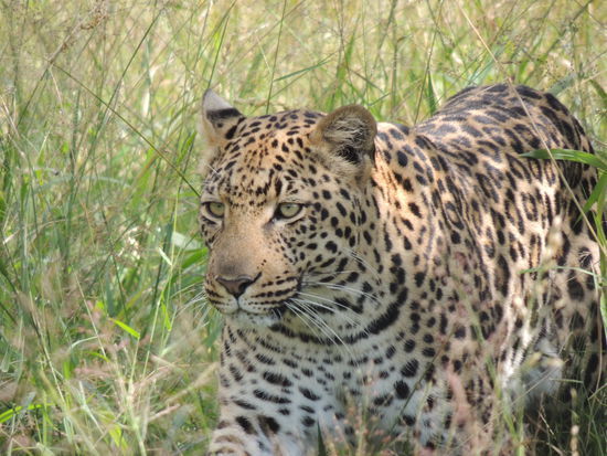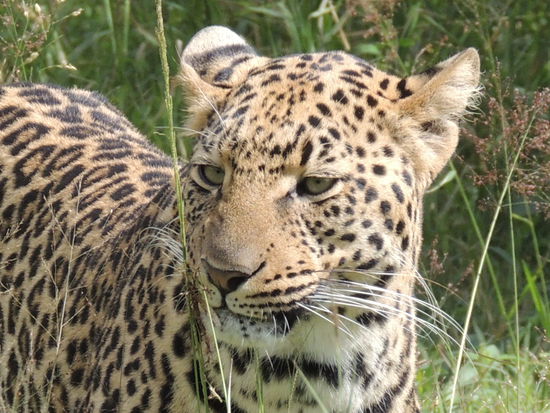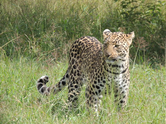 Vom Center aus ging es direkt weiter auf Safari Tour. Wir sahen wieder viele Giraffen und Elefanten, aber die waren nich mehr so interessant wie anfangs. Wir wollten alle einen Leoparden finden, damit wir die Big Five komplett haben. Es hat lange gedauert, doch dann waren wir im siebten Safarihimmel: Zuerst entdeckten wir auf einer Wiese unter einem Baum einen wunderschönen Leoparden, der für uns einige Minuten posierte. Ein wündershönes Geschöpf. Ich war so glücklich, dass ich die Big Five gesehen habe!