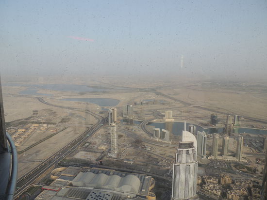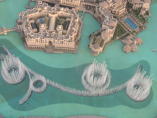 Leider ist die Plattform ziemlich unspektakulär. man hat zwar einen schönen Blick auf die Wasserfontänen, die in einem kleinen See vor dem Turm und der Mall liegen.