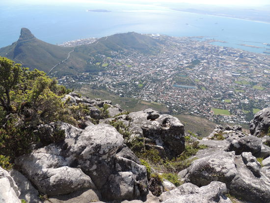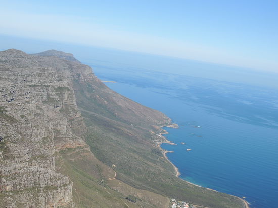 Der Tafelberg. Majestätisch trohnt er über Kapstadt. Er ist aus dem Stadtbild ebensowenig wegzudenken wie der Michel aus Hamburg oder die Golden Gate Bridge aus San Francisco. Zur Bergspitze und zum Plateau führt eine Seilbahn hinauf. 18€ kostet umgerechnet ein Ticket mit Rückfahrt. In der Warteschlange traf ich den Franzosen von gestern wieder. Wir entschieden uns den Berg gemeinsam anzusehen. Was gar nicht so einfach war, weil er ein noch verrückterer Fotograf ist als ich. Die irrsten Fotos hat er hinbekommen. Er kletterte über Absperrungen und hangelte sich am Abhang entlang. Aber immerhin hat er dann im Gegenzug auch gute Fotos von mir gemacht. Mein Alu-Stativ wäre bei dem starken Wind wahrscheinlich weggeweht.