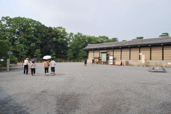 Am Kyoto Kaiserpalast verlassen wir den klimatisierten Bus wieder. 12 Uhr mittags, high-noon, grauenhafteste Zeit für eine Besichtigung, die im Freien stattfinden wird, denn der Kaiserpalast von Kyoto ist kein Museum. Wenn der Tenno in Kyoto ist, wohnt er hier. Alarmstufe rot, also. Bereits im Bus haben wir Formulare ausgefüllt, Name, Herkunftsland usw. In glühender Mittagshitze dackeln wir dem Guide hinterher, der unsere Formulare bei der Palastverwaltung abgibt. Wir müssen Aufstellung nehmen, in geordneter Reihe und sortiert nach Tourgruppe, während unsere Daten geprüft werdenoder mein Verdacht: Die Palastwachen amüsieren sich jetzt sehr über die ganzen bescheuerten Ausländer, die dieses Areal besuchen wollen und dafür nun - zur Strafe - 10 Minuten in der gleißenden Sonne schmoren sollen. Und so schmoren wir wirklich, es ist brüllend-heiß. Eigentlich warte ich darauf, dass die erste Touristin aufgrund eines Hitzschlages zusammenklappt. Unter dem schattigen Palasttor stehen uns die Wächter gegenüber, luftig ventiliert. Warum lässt man uns in absolut ungesunder Hitze stehen, wenn der schützendstwerte Kaiser noch nicht einmal da ist ?