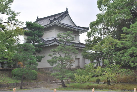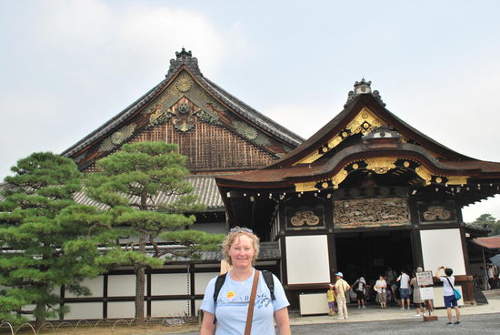 Treffpunkt ist in einem nahegelegenen anderen Hotel und die Gruppe besteht nur aus einer 4-köpfigen Familie aus Barcelona und mir + Guide, natürlich. Wir besuchen zunächst das Nijo-Schloss, welches ich absolut faszinierend finde ! Ohne Führung bzw. wenigstens audio-guide durchzulaufen, bringt meiner Meinung nach nicht viel, zuvieles ist erklärungsbedürftig. Das Schloss war keineswegs kaiserlich, sondern Wohnsitz der Shogune. Fertiggestellt wurde der Bau auf dem 275.000 qm großen Gelände 1626. Die Anlage besteht aus 23 Gebäuden und Toren. Allein das Hauptgebäude, der Ninomaru-Palast verfügt über 33 Räume mit einer Größe von 800 Tatami-Matten. Tatami ist bis in die heutige Zeit das Flächenmaß in Japan für qm/Wohnfläche. 1 Tatami = ca. 1,64 qm. Das Ganze ist also riesig und sehr leer, daher sind auch die Erklärungen so wichtig, was in den einzelnen Räumen, Sälen und Hallen so stattgefunden hat, früher. Hauptbaumaterial des Nijo Schlosses: Japanisches Zypressenholz. Unser Guide ist in der Lage, sehr fesselnd Geschichten rund ums Nijo Schloss zu erzählen. Z.B. die Funktion der (lustiges Wort) Mushakakushi-no-ma. Der Shogun war offenbar jederzeit bedroht von Feinden und Spionen, daher gab es verborgene Gänge neben den Versammlungsräumen, in denen bewaffnete Wächter parat saßen und heimlich zuschauten, während der Shogun seine Audienzen abhielt. Wie ein Sondereinsatz-Kommando wären sie sofort aus den Kulissen gesprungen, im Falle eines Angriffs auf den Shogun. Interessant auch die akustische Spionageabwehr. Ohne Schuhe wandert man durch die Gebäude und hört es bei jedem Schritt auf den hölzernen Böden quietschen. Und das liegt nicht an den uralten Holzdielen, sondern ist aufwändig durch eine spezielle Bodenarchitektur aus Nägeln und Hohlräumen absichtlich so geschaffen worden. Hätte sich ein feindlicher Spion in der Nacht anschleichen wollen, so hätten ihn seine quietschenden Schritte sofort verraten ! In manchen Räumen sind auch lebensgroße Puppen in der damals üblichen Kleidung ausgestellt. Männliche Besucher mussten z.B. viel zu lange Hosen/Mäntel tragen, die ihnen bei einem plötzlichen Angriff sehr hinderlich gewesen wären. Die Damen des Schlosses trugen Kurzschwerter immer bei sich, nicht zur Selbstverteidigung, sondern für den Harakiri-Selbstmord im Falle einer Geiselnahme. Anhand all dieser Geschichten erkennt man, wie völlig fremd die japanische Kultur vergangener Jahrhunderte für uns so ist. Und weil sich das Land erst so extrem spät dem Westen öffnete, sind seltsame Traditionen und Verhaltensweisen erhalten geblieben. Exotisches Japan !