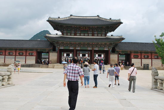 Gyeongbokgung ist die koreanische Ausgabe der "verbotenen Stadt". Die Anlage ist ein wenig ähnlich aufgebaut, wie der Kaiserpalast in Peking, allerdings längst nicht so riesig. Immerhin ist dieser Palast mit Abstand der größte in Seoul und auch der bedeutendste. Gebaut wurde die Anlage zuerst 1395 vom Gründer der Joseon Dynastie, König Taejo. Während einer der japanischen Besatzungszeiten, die sich in den letzten Jahrhunderten immer wieder zugetragen haben, brannte 1592 alles nieder. 300 Jahre lang lagen hier nur Brandruinen, bis 1865 mit dem Wiederaufbau begonnen wurde. Während der japanischen Besatzung von 1910-1945 wurden wiederum etliche Veränderungen vorgenommen und Gebäude abgerissen. Erst 1990 hat man begonnen, den Palast in seiner ursprünglichen Form zu restaurieren. Fertig ist man damit bestimmt immer noch nicht.