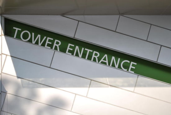 Angeblich ist der Fahrstuhl zur Aussichtsplattform der schnellste der Welt. Spacig ist er auf jeden Fall. An der Liftdecke läuft ein kleines Video.