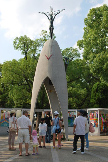 unter diesem Cenotaph liegt die Truhe der Namen, man hat zumindest versucht, die Namen aller Opfer hier zusammenzutragen. Und auch heute werden noch die Namen derjenigen hinzugefügt, die an den Spätfolgen des Atombombenabwurfes gestorben sind.