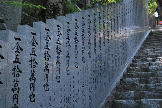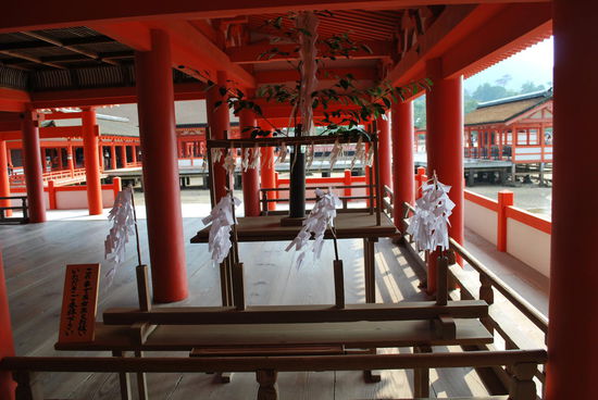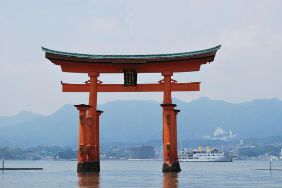 Dieses Torii ist eines der Wahrzeichen ganz Japans. Es gehört zum Itsukushima Schrein und steht bei Ebbe auf dem Trockenen. Dann kann man auch hinüberlaufen