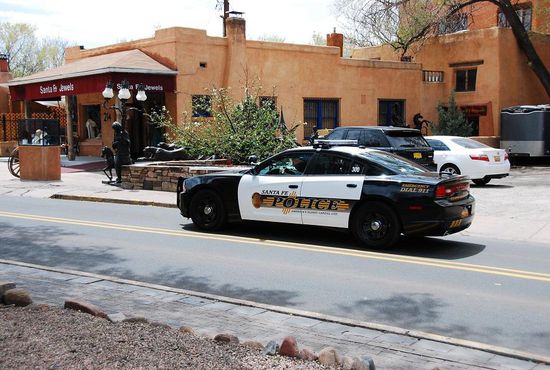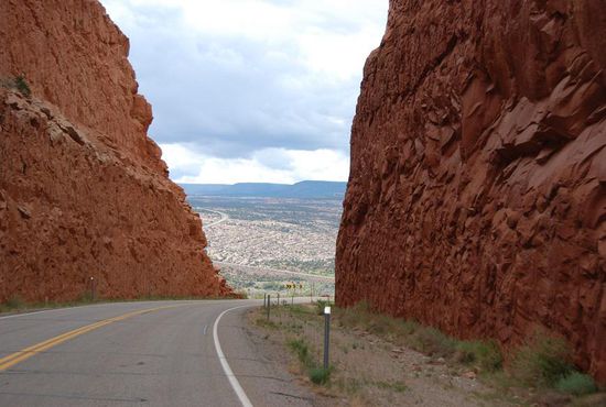 Heute wollten wir wieder etwas Kilometer raffeln. Unser nächstes Ziel ist Santa Fe in New Mexico. Ausser einem kurzen Stopp auf einem Flohmarkt fuhren wir durch. Etwa 100km vor Santa Fe machten wir halt auf einem Rastplatz. Die Landschaft war genial, einfach nur Steppe soweit das Auge reicht. Wir wollten auf einen Hügel laufen, da wir dort bessere Sicht erhofften, aber aus irgend einem Grund hatte es wohl eine Absperrung... als wir wieder hinunter liefen... stand ein Stier oder Kuh da.... Ich weiss nicht wer von wem mehr Angst hatte. Auf jeden Fall liefen wir nahe am Zaun damit wir uns hätten retten können. "lach"