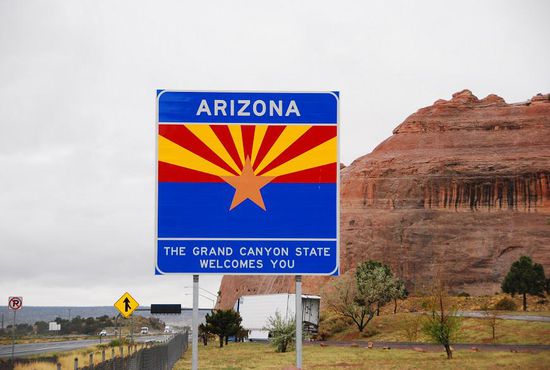 Bei Arizona hatten wir bereits wieder Zeitumstellung -9h. In Winslow haben wir den Meteor Crater, ist ein Einschlagskrater eines Meteoriten, besichtigt. Der Krater hat einen Durchmesser von etwa 1200 m, eine Tiefe von 180 m und wird von einem Wall umgeben, der durch den Auswurf des Einschlags entstanden ist und sich etwa 30 bis 60 m über das umliegende Plateau erhebt.