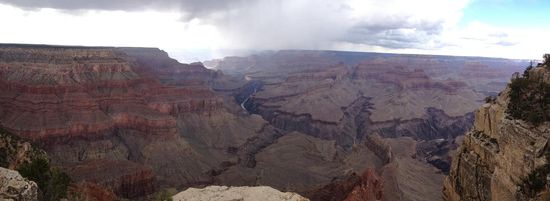 Wir wollen noch den Grand Canyon erreichen, dies taten wir auch zum Sonnenuntergang. Also parkiert und an einen Aussichtspunkt gelaufen und jetzt kommts... Die Wirklichkeit übertrifft Massiv die Vorstellung, nicht mal Bilder können dies real wirken lassen. Wir kamen nicht mehr aus dem Staunen hinaus und ich bin froh, konnten wir schon heute Abend ein Auge drauf werfen damit ich schon mal eine Nacht Zeit hatte dies zu verdauen. Einfach grandiose! Der Canyon ist zwischen 6 und 30km breit, 1600m tief und innerhalb des Parks 160km lang. Er ist das Meisterwerk des Colorado Rivers, der sich im Laufe der Jahrmillionen durch die roten, gelben, grauen, braunen, grünen und Schwarzen Schiefer-, Granit-, Kalk- und Sandsteinschichten hindurchgearbeitet hat.