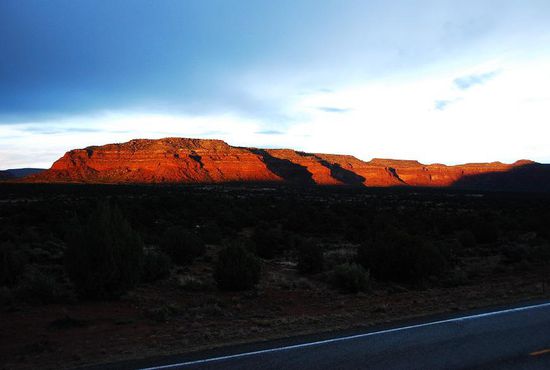 Als erstes haben wir das Propan aufgefüllt, dort im Büro war ein Jack Russel, der noch mehr spinnte als Kiro wenn er seine Spielzeuge im Maul hatte, der war so lustig. Auf dem Weg Richtung Bryce Canyon sind wir die Indian Ruins (Höhlen im Gestein wo früher die Indianer gelebt haben) sowie die Natural Bridges (Felsen mit Auswaschungen, sieht aus wie eine Brücke) anschauen gegangen. Wir fuhren durch den Glen Canyon, es wurde immer dunkler und unser Benzin wurde immer weniger und wir befanden uns mitten im Nirgendwo.... Da die Landschaft einfach zu schön ist als in der Dunkelheit zu fahren, entschlossen wir uns anzuhalten und zu übernachten, ohne Natel / Internet Empfang, irgendwo in der Prärie.