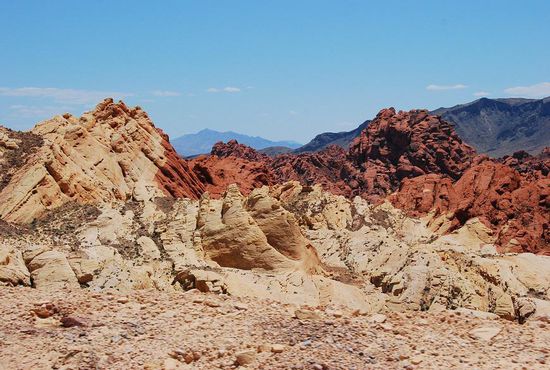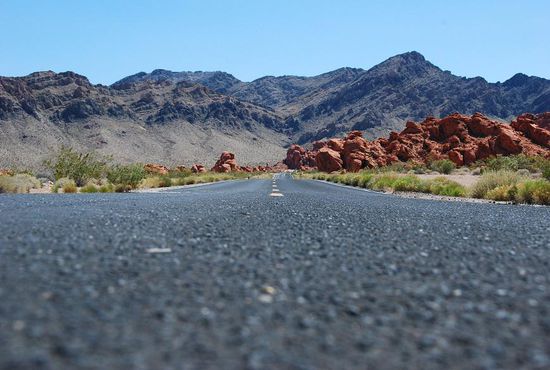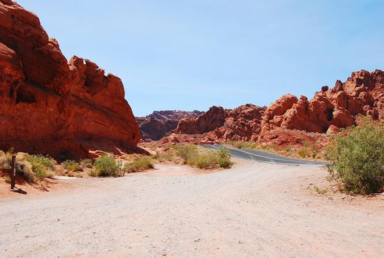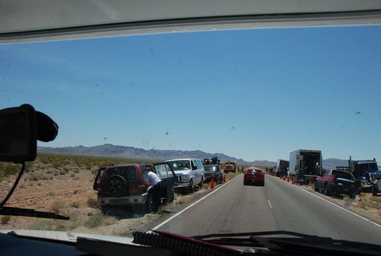 Unterwegs Richtung Los Angeles. kurz nach Mesquite machten wir Stop bei der Unfallstelle von Steve Lee, eine Gitarre ziert die Stelle. Im Valley of Fire besuchten wir noch diverse Aussichtspunkte. Auf dem Weg dorthin warn noch eine Crew, welche Filmaufnahmen machten.