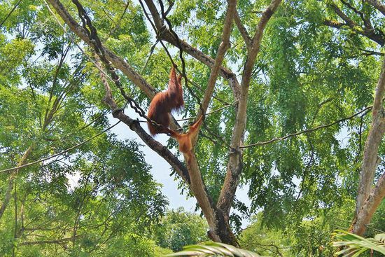 Der Zoo beherbergt unzählige Affenarten, unter anderem auch eine große Kolonie an Orang-Utans, von denen sich viele gänzlich frei im Park bewegen können.